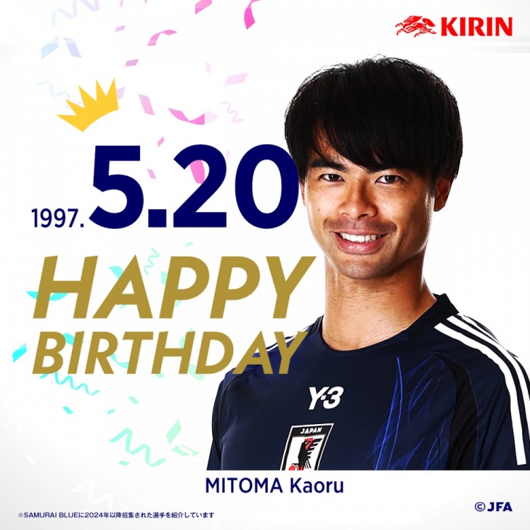 日本国家队官推写道:“5月20日是现效力于布莱顿的三笘薰28岁生日,祝他生日快乐!”