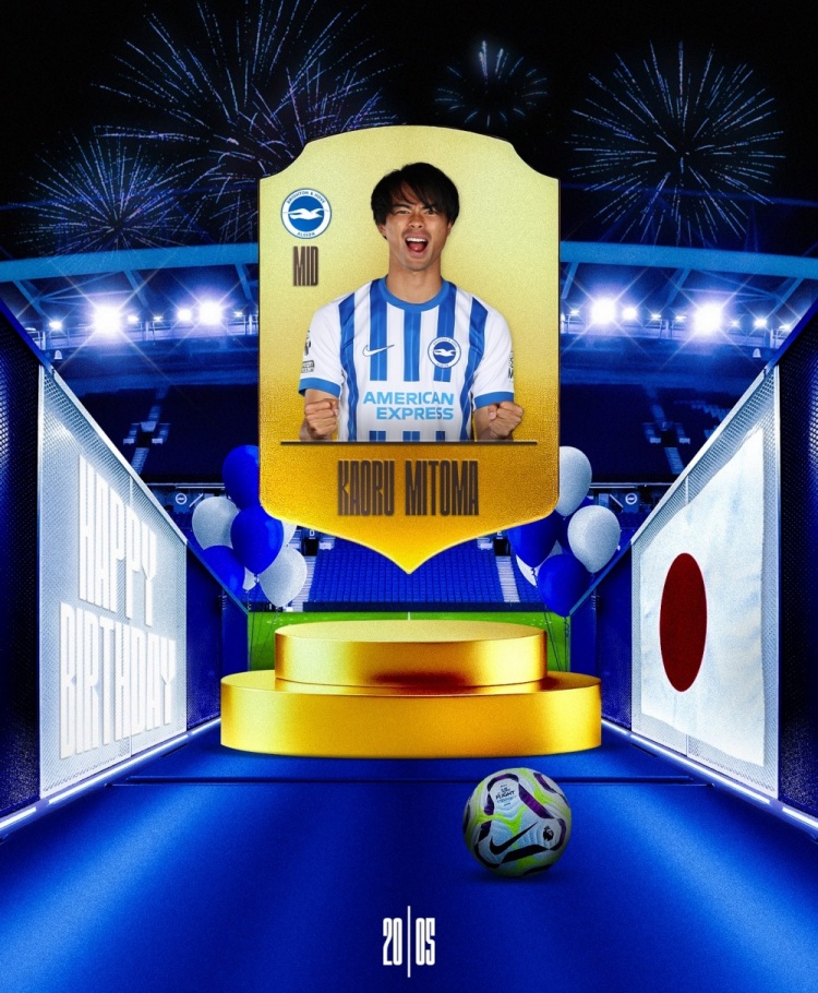 迎28岁生日,布莱顿和日本国家队官方向三笘薰送上生日祝福