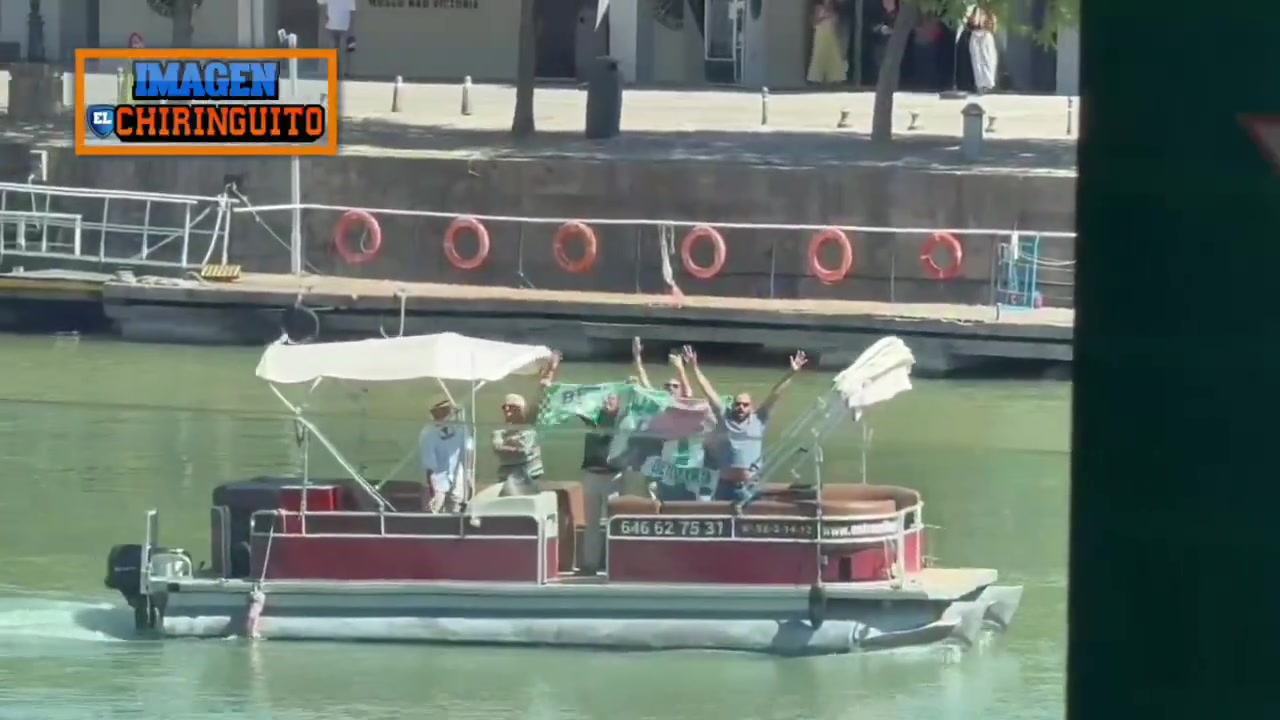 贝蒂斯为安东尼举办了欢迎会,安东尼流下了喜悦的泪水,有贝蒂斯球迷乘船观看欢迎会,安东尼向他们招手致意。